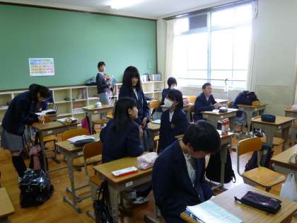 休憩時間の生徒たちは,10分という短い間ですが,リラックスした雰囲気で過ごしています。