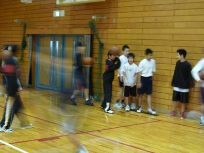 今日から朝練習に1年生も参加しています。まずは男子バスケットボールからです。