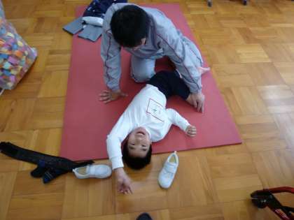ランニングのラストの様子です。教室では,ストレッチを行っていました。
