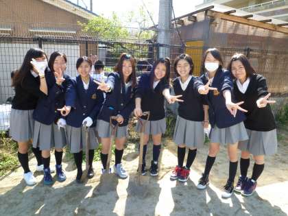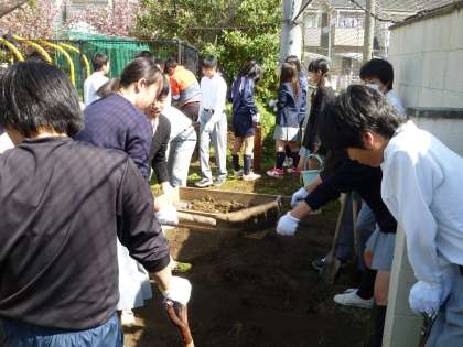 6組の隣で,3年生が土おこしに取り組んでいます。