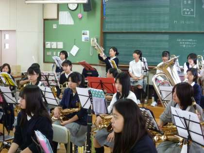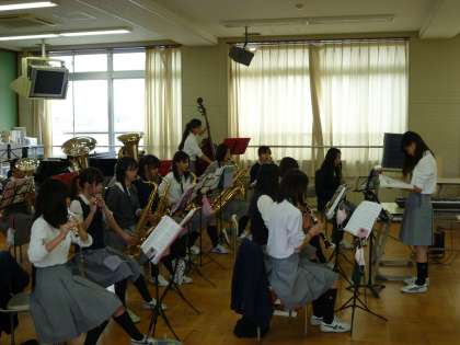 吹奏楽部の1年生は何やら踊りの練習です。2・3年生は合奏をしていました。