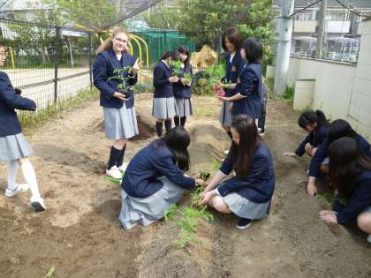 3年生の一部の学級ですが,夏野菜の苗植えが始まりました。