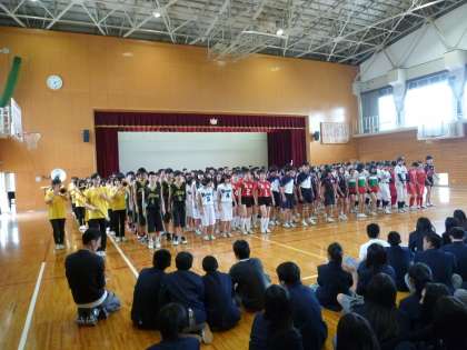 行進の最後に,個人で出場する卓球の選手も,今年は参加してくれました。