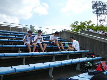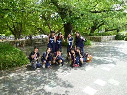 女子バスケット部はバスに乗らず,桂中学校で練習試合。陸上部は陸上競技場に残って合同練習会です。