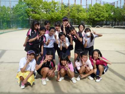 開会式後の女子テニスは学校にもどり,練習です。お邪魔した時には練習が終了していましたので,集合写真を3枚撮りました。