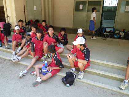 男子ソフトテニスの会場(桂中学校)へ駆けつけた時には,試合が終わっていました。残念ながら初戦の下京中に,1−2で敗れました。明日の個人戦での健闘を期待します。