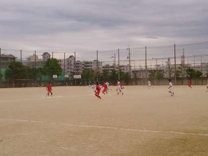 サッカーの2回戦が洛南中学校でありました。相手は合同チームです。押しに押していたゲームですが,序盤の1点を返せず,0−1で敗れました。新人戦の再来を期待していただけに残念な結果です。