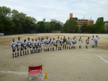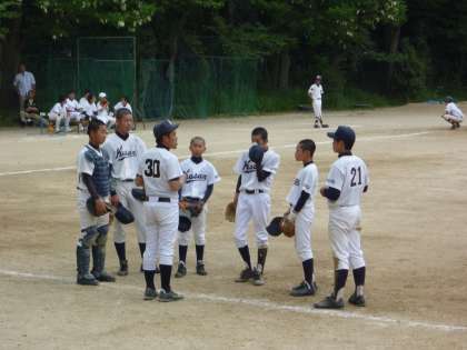 10回の特別延長ルールでは無死満塁から攻撃をはじめるというものです。ここで花山の猛打が爆発。6点をとり,その裏の松原の攻撃をかわし,勝利をおさめました。3回戦進出です。明日,9:00より樫原中学校グランドにておこなわれます。