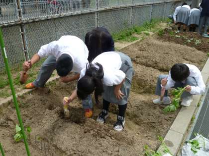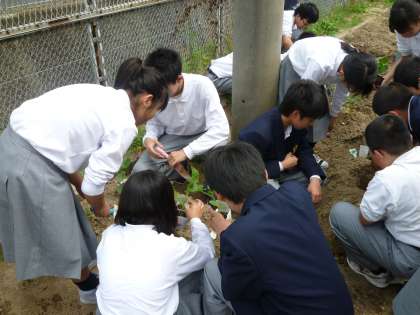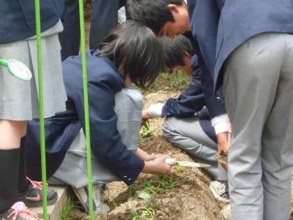 午前中,過ごしやすかったですが昼から気温が上がり,少し蒸し暑さを感じるなか,苗植えがすすめられていきました。