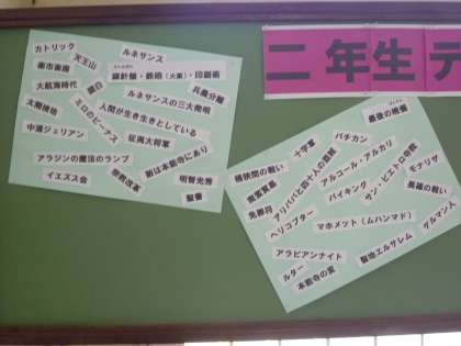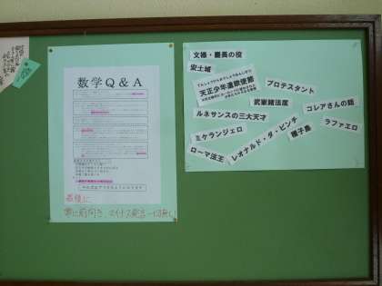 2年生は,テストのワンポイントアドバイスやこれは覚えておこうという部分が掲示されています。