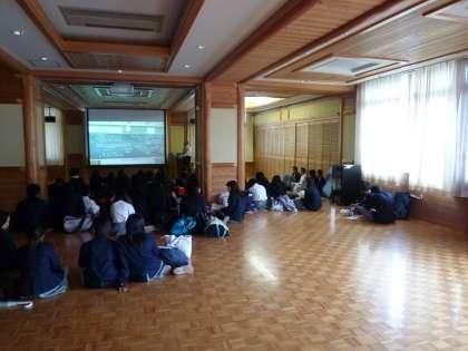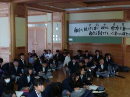 放課後学習後,多目的室に2年生が70名ほど集まり,社会の補習を受けていました。