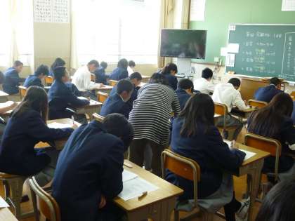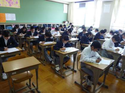 国語のテストです。鉛筆の音だけが聞こえてきます。