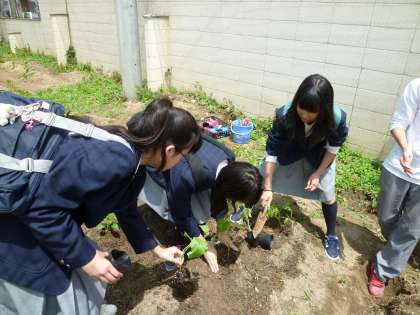 夏休み前の収穫まで,毎朝の水やりや雑草抜きなど手をかけて育てます。
