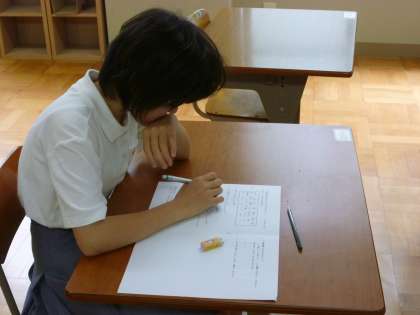 6組が理科のテストに取り組んでいます。