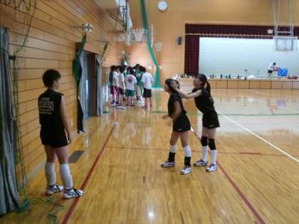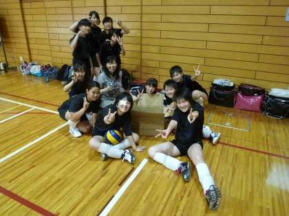 女子バレー部は,練習前に1・3年生仲良く集合写真です。
