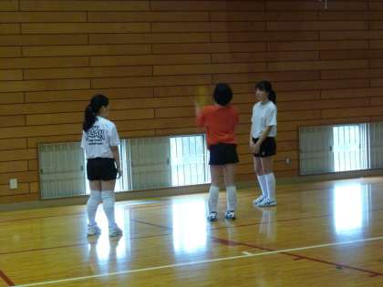体育館ではバレー部の3年生が1年生を指導しています。
