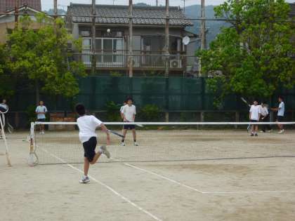 午後から男子ソフトテニスが活動をしています。1年生部員も多く入部したので,コートに人があふれています。