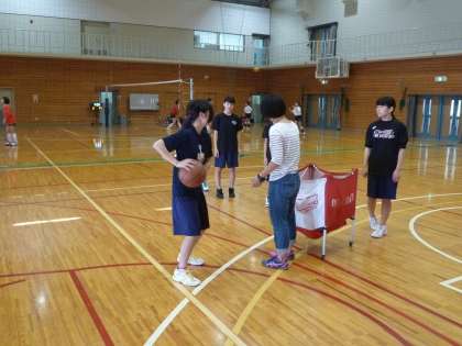 女子バスケット部はアウトサイドのシュートの練習です