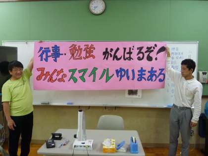 朝学活にいってみると6組で学級目標を紹介していました。生徒総会で全体へは発表ですが,一足早く披露します。