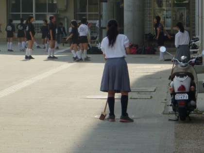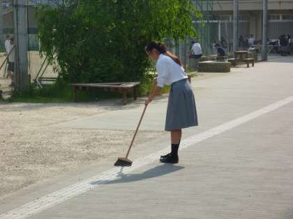 今日も吹奏楽部の生徒が朝の清掃をしてくれています