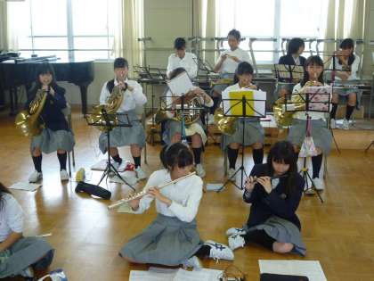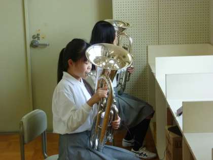 音楽室では様々なパートが朝練習しています。