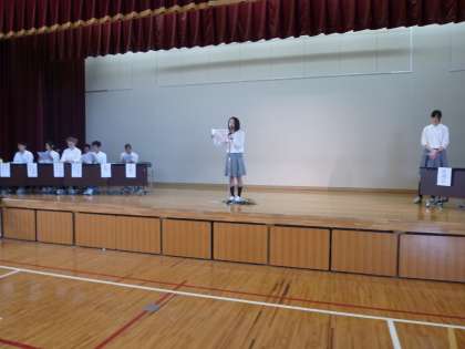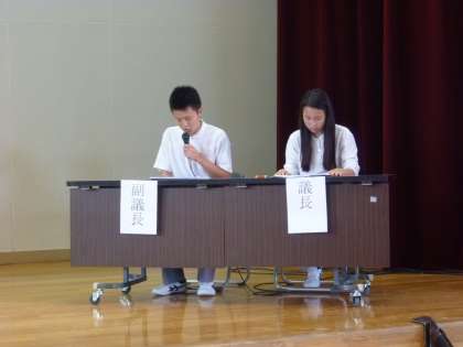 まずは,生徒会からのあいさつ,議長・副議長の選出,生徒会本部からの方針説明です