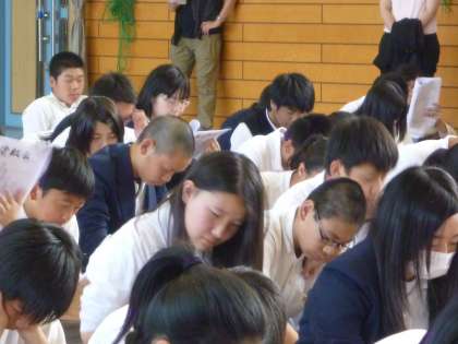 生徒は,真摯なまなざしで総会の議案書に目を通しています。