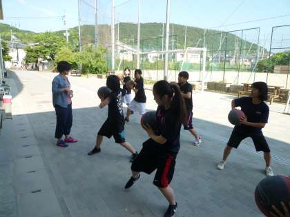 女子バスケットボール部は昨日の日曜,凌風中学校で練習試合をしていますが,今日も朝から練習です。