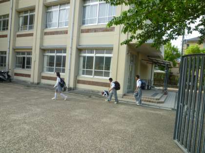 花山中学校の登校する入口は正門とその南隣の入口があります。朝だけこの入口はあいています
