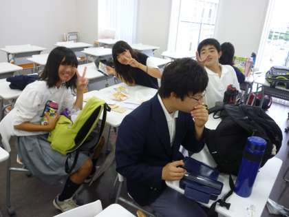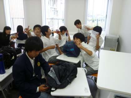 京都学園大学天神川御池キャンパスも昼食場所の一つです。小雨のため,学園大学が部屋を用意してくれました。