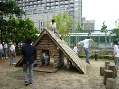 市役所前広場で全体集合がかかるまで遊んでいます。