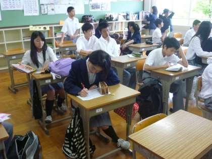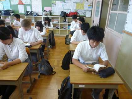 ほとんどの人が朝読書に取り組んでいます。なかには勉強(宿題?)をしている人もいます