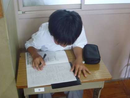 教育相談を待っている間でしょうか,廊下で学習をしている生徒もいます。