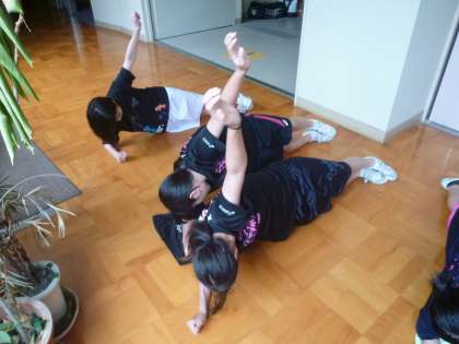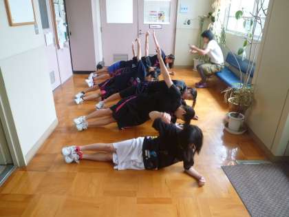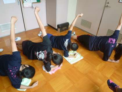 女子バスケットボール部が体幹トレーニングに取り組んでいます