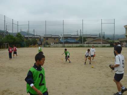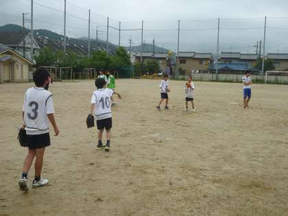 雨上がりのグランド状態はあまりよくないなか,1年生が取り組みます