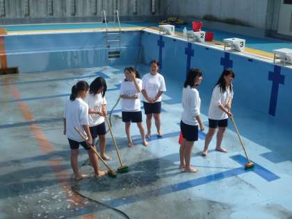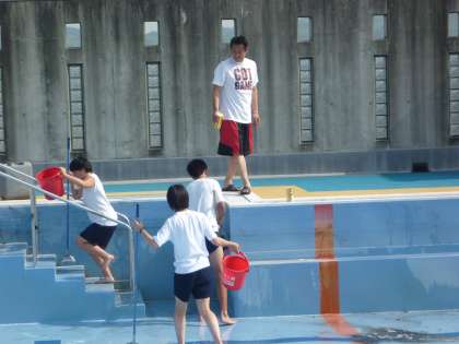 雨も朝には止み,プール清掃の時には暑いくらいでしたのでみんな,水をつかえて気持ちよさそうでした