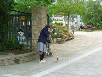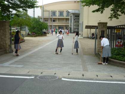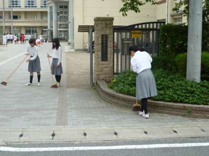 吹奏楽部がいつものように校門の清掃をしてくれています