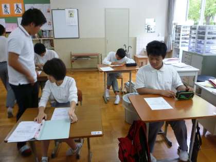 6組の教室ではちょうどアウトメディア点検が行われていました