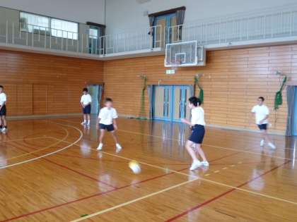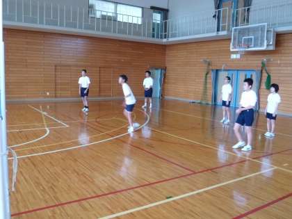 6組が体育館でバレーボールの授業です