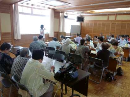 鏡山社会福祉協議会が主催のすこやか健康学級が多目的室で午前中実施され,地域の高齢者のかたが多く来校されました