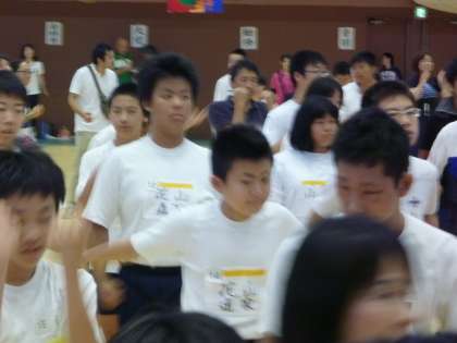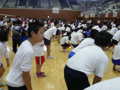 開会式に続いて準備体操があり,全員アップテンポな曲に合わせて身体を動かしました