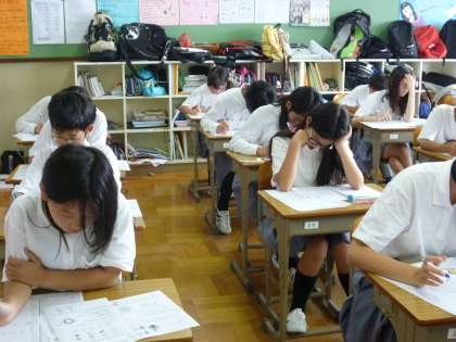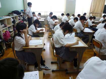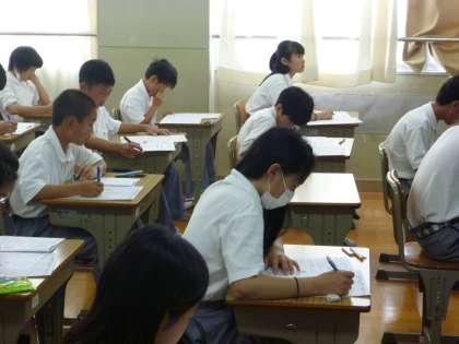 1年生の明日の定期考査の時間割は社会・英語・音楽です