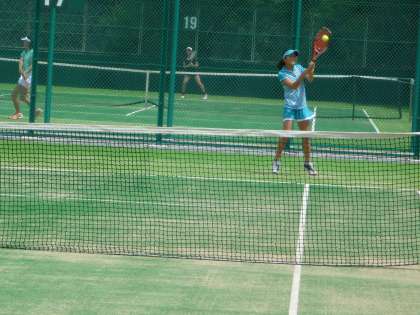 社会体育で硬式テニスに取り組んでいる女子生徒が土曜日に一足早く近畿大会に挑みました。会場は奈良県明日香庭球場です