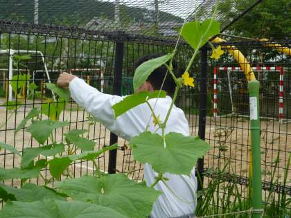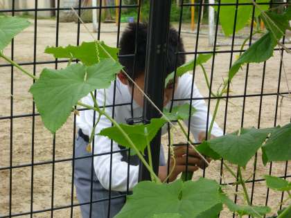 今朝は,きゅうりの収穫をしているようです。立派なきゅうりが採れました