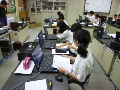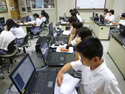 PC室で1年生が定期考査の返却後,PCの授業です。