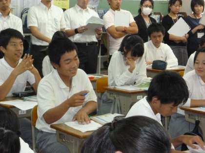 多くの先生方の参観でしたが,生徒は積極的に発言していました