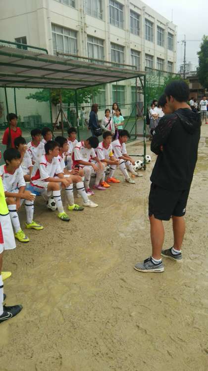 前半の中盤を過ぎたころに,花山のゴールまでボールが大きくバウンドし,それを相手選手に拾われ失点。1点をおいかける展開となりました。