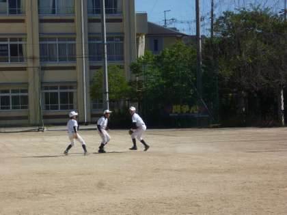 ランナー1・3塁の設定からの挟殺プレーの練習です