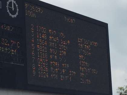 7月28日,昨日に引き続き,西京極陸上競技場で陸上競技府下大会が行われ,2年男子100mに出場している2年生の勝野優輝くんが,決勝進出を決めてくれました。決勝でもぜひ頑張ってください。