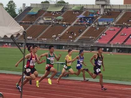 陸上競技府下大会2年男子100m決勝に出場した勝野優輝くんですが,11秒68の好タイムで見事3位に入り,表彰台に上るとともに,近畿大会への出場を決めてくれました。